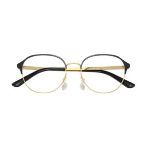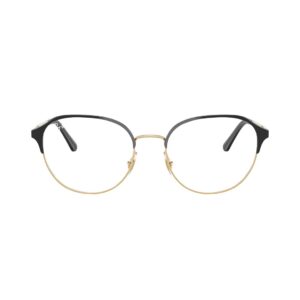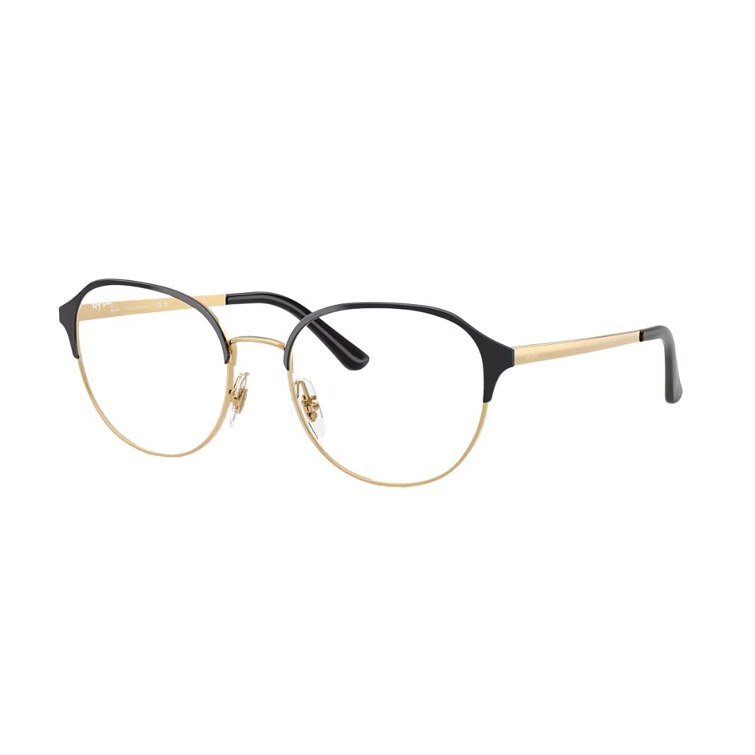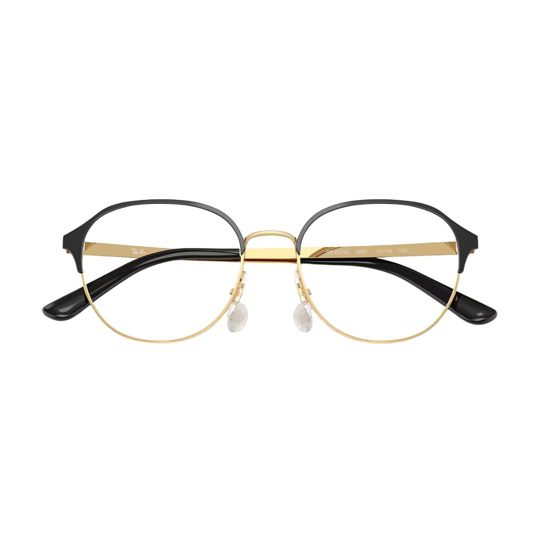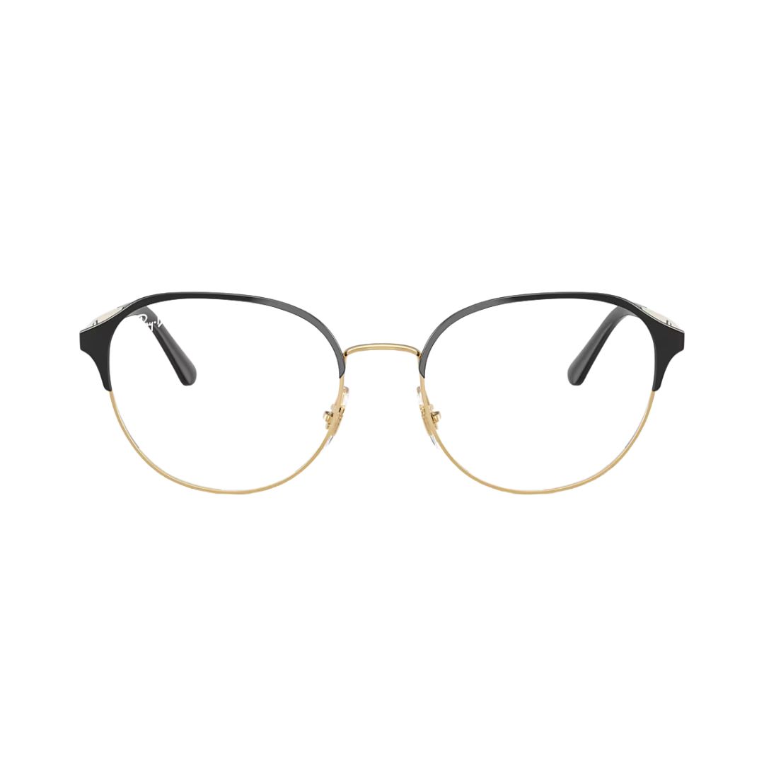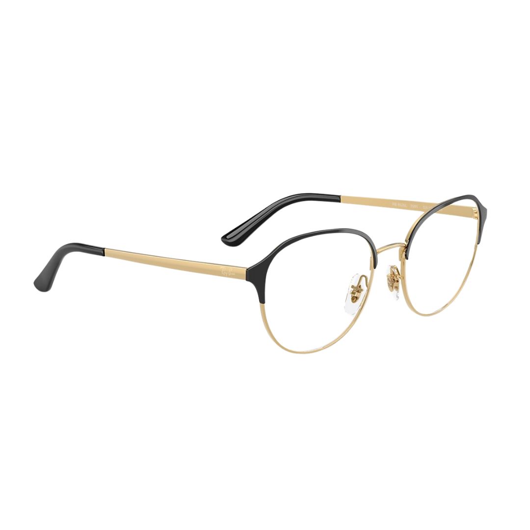 Armação Ray-Ban modelo 0RX6526L com acabamento Black on Gold (preto com detalhes dourados), unindo elegância e modernidade. Fabricada com materiais de alta qualidade, oferece durabilidade e conforto, além do design clássico da marca Ray-Ban.