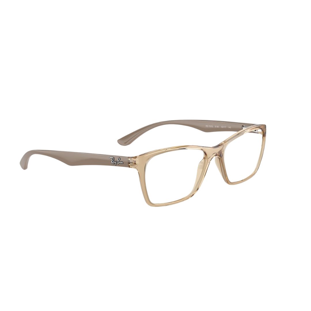 A armação Ray-Ban 0RX7033L na cor Translucent Caramel (caramelo translúcido) combina leveza, conforto e estilo. Seu visual moderno é ideal para quem deseja um acessório sofisticado e discreto, com a qualidade reconhecida da marca Ray-Ban.