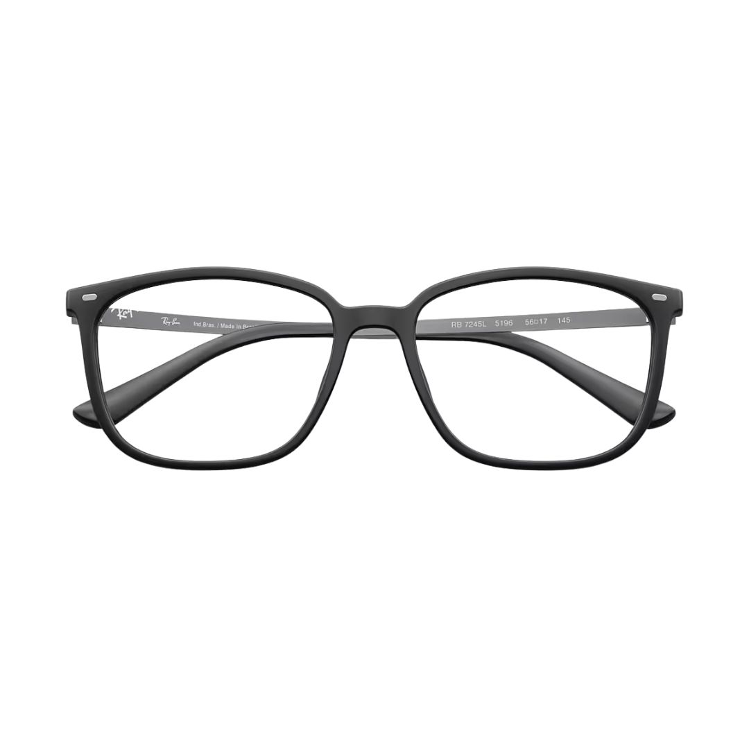 Armação Ray-Ban 0RX7245L na cor preta fosca (Matte Black), ideal para quem busca um design clássico e sofisticado com a qualidade reconhecida da marca Ray-Ban. Estrutura resistente e confortável, perfeita para uso diário.