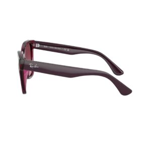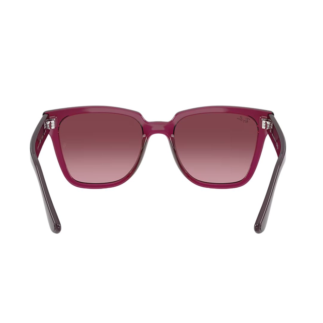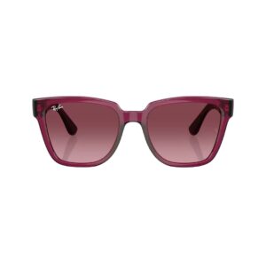 O Ray-Ban RB4437L C65668H 55mm apresenta uma armação em tom vinho translúcido sofisticado, combinada com lentes em degradê do rosa ao violeta escuro, proporcionando conforto visual e proteção completa contra os raios UV.